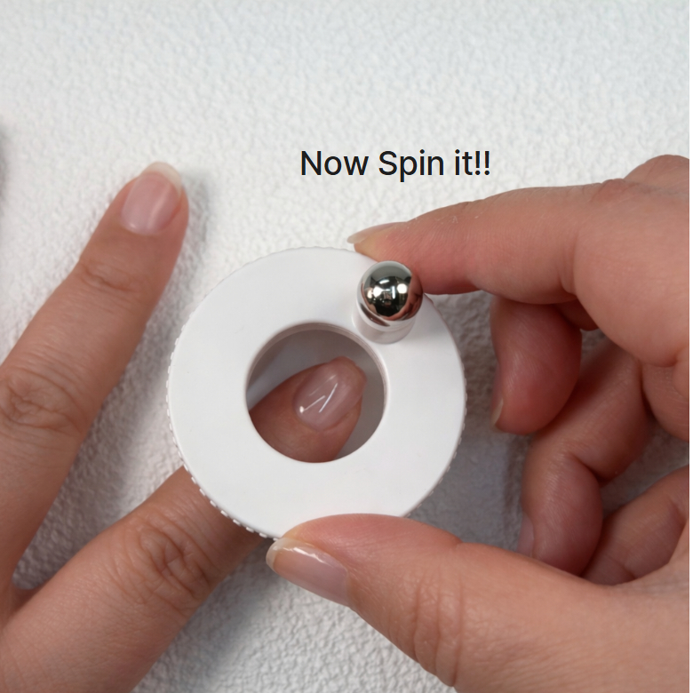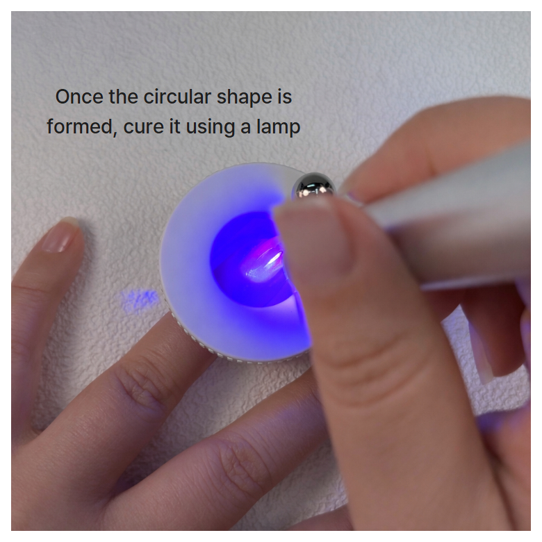 マグネットジェルの上に置いて軽く回すと、わずか3秒で美しい円形アートが完成します。
